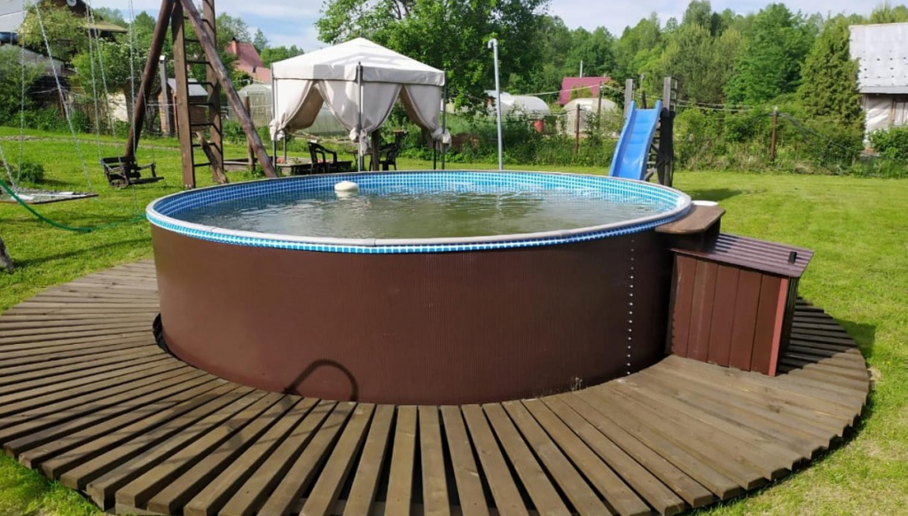 Отзывы к товару "Бассейн Лагуна морозоустойчивый 5.50х1.25м круглый шоколад (песчаный фильтр, лестница, кварцевый песок,скиммер, форсунка) 55011-02":